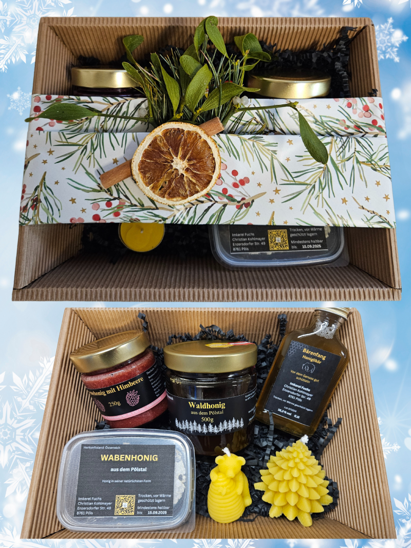 Die festliche Zeit steht vor der Tür, und wir haben genau das Richtige für euch! 🌟 Unsere Honigbox kann individuell gestaltet werden – perfekt als persönliches Geschenk. Oder wie wäre es mit unseren Geschenkkartons mit einem, zwei oder drei Honiggläsern in wunderschöner Verpackung? 🍯🎀