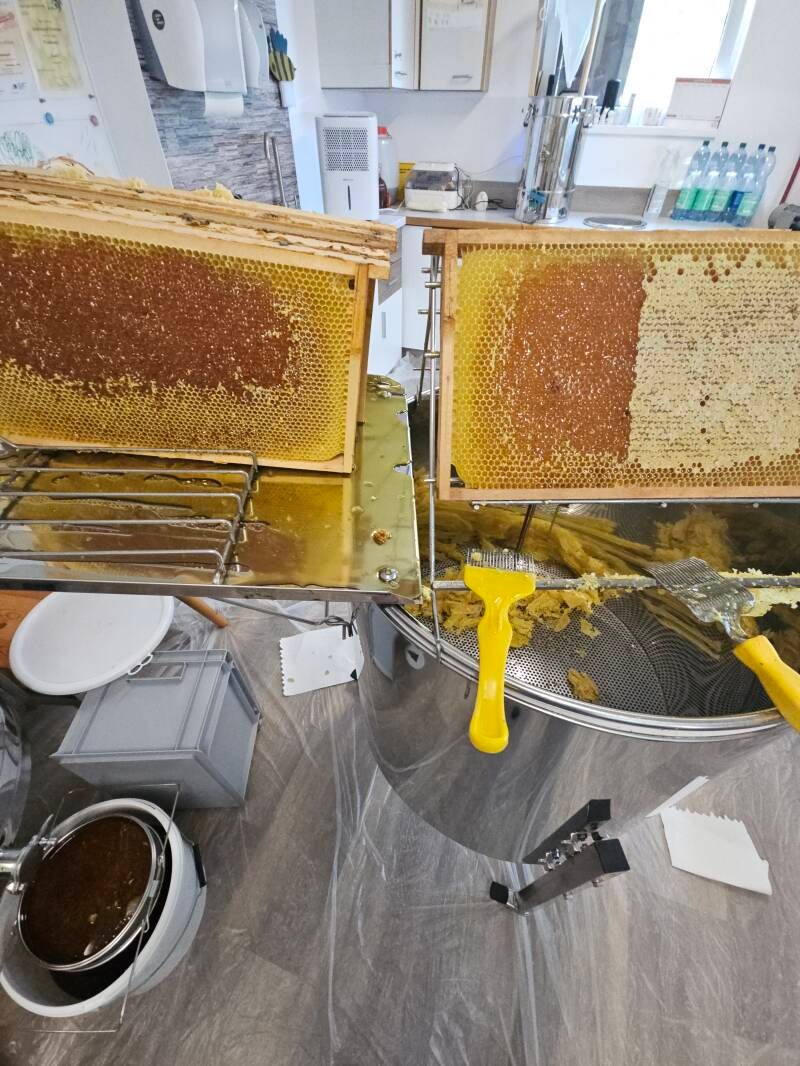 Mittlerweile hat der Wald begonnen zu honigen, und wir blicken zuversichtlich auf den Sommer. Unser nächster Schleudergang ist für Juli geplant – mit etwas Glück dürfen wir uns dann über eine reichhaltigere Ernte freuen.