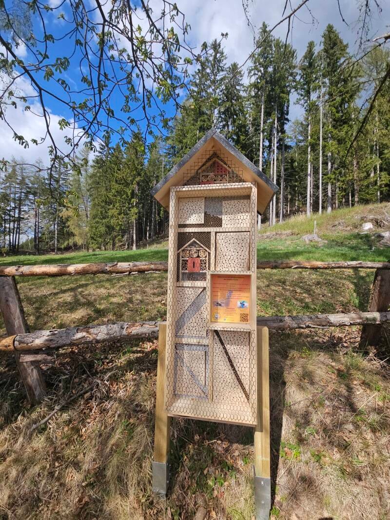 Der Lehrpfad richtet sich an alle Altersgruppen – ob Kinder, Familien oder Naturinteressierte – und lädt dazu ein, die Natur bewusst zu erleben und Neues zu entdecken. Ein besonderes Highlight ist das selbstgebaute Wildbienenhotel, das zahlreichen Wildbienenarten einen geschützten Lebensraum bietet und einen wichtigen Beitrag zur Förderung der Artenvielfalt leistet.
